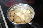 1.じゃがいもは5分ほど水にさらし、ひたひたの水で竹串がすっと通るまでゆでます。湯を捨て、再び火にかけて軽くゆすりながら水分を飛ばし、じゃがいも全体に粉をふかします。 2.熱いうちにバター、塩、こしょうを加え、マッシャーやヘラ、フォークなどで粒が残らないようにつぶします。そこに牛乳を少しずつ加えてはしっかり混ぜて、好みの固さのマッシュポテトに仕上げます。 |